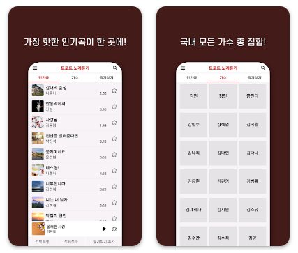 - "가수 이름만 입력하면 관련 노래가 계속 나와서 좋아요. 트로트 좋아하시는 부모님께도 설치해드렸습니다."
