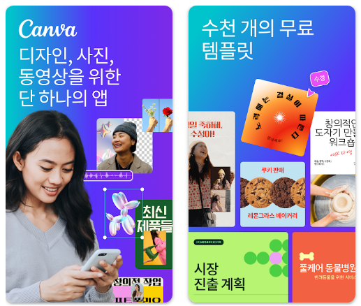 구글 플레이스토어 또는 애플 앱스토어에서 “Canva”를 검색하면 쉽게 설치할 수 있습니다.